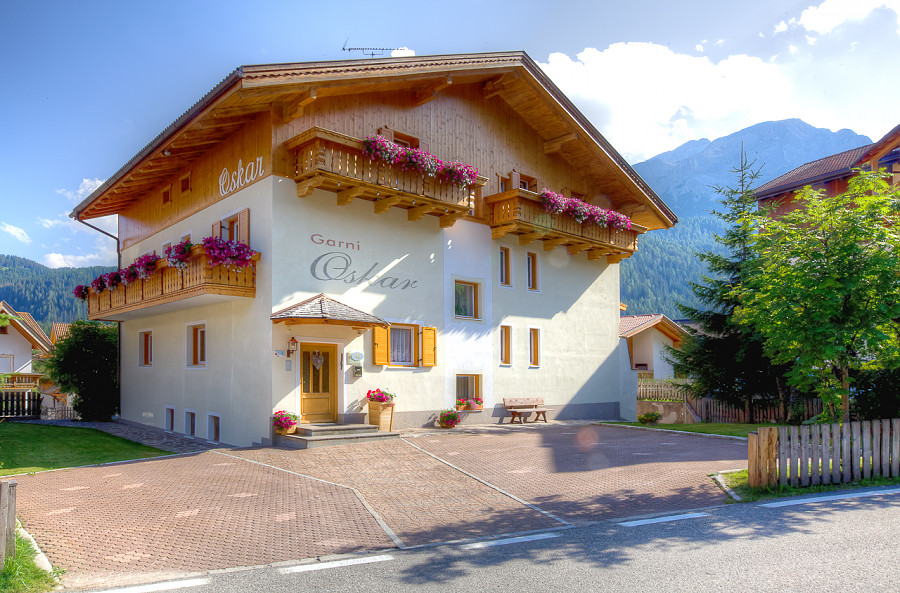 Il garni si trova a Corvara, in posizione panoramica proprio ai piedi della sua montagna simbolo: il maestoso Sassongher.